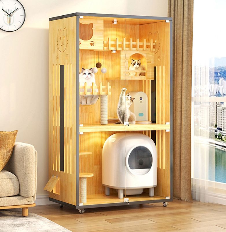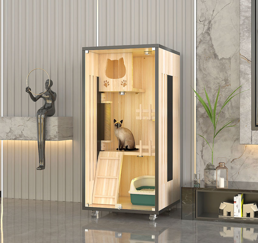 나무로 된 별장 : 고양이 별장은 보통 주의 깊은 설계와 처리 뒤에, 고급 품질 고체 목재 또는 목제패널로 만들어지는 전체 가구의 선체입니다. 쉬고 놀기 위해 그들에게 안전한 장소를 주면서, 나무로 된 별장은 고양이들에게 개인적이고 편안한 생활 공간을 제공합니다.