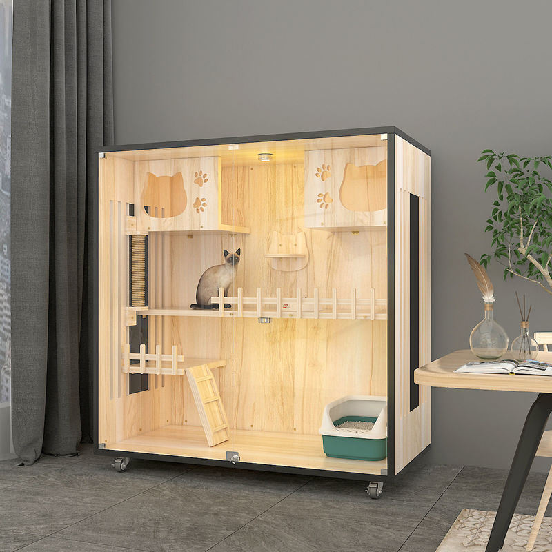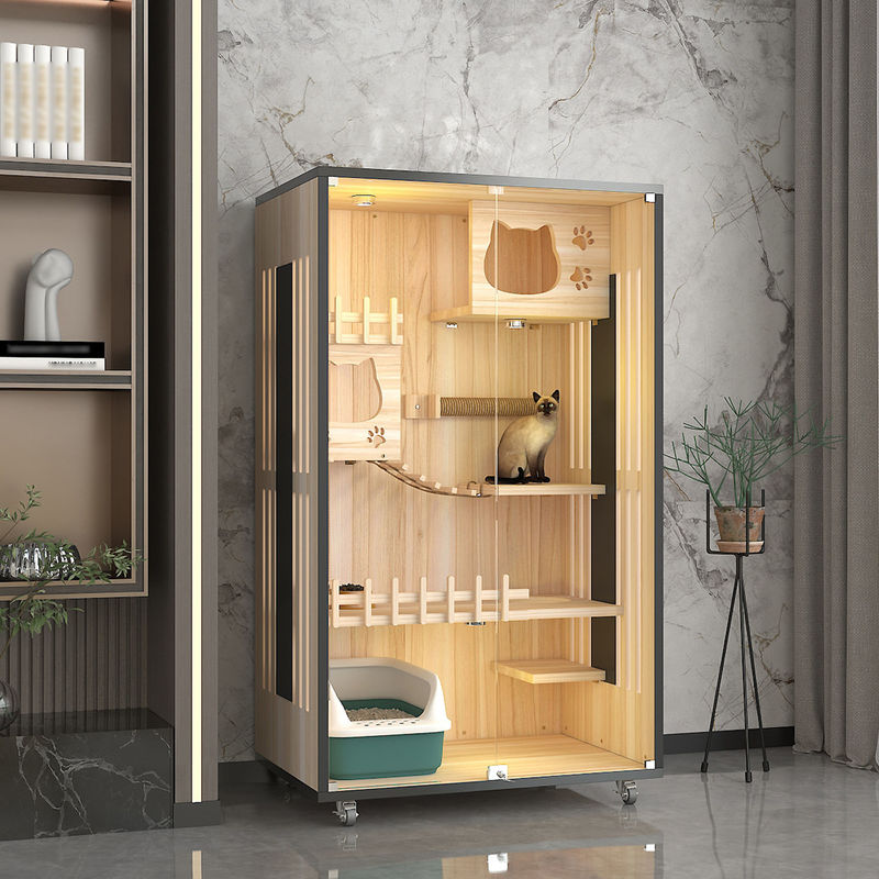 휠 고양이 상자 고양이 빌라 새끼 집 고체 목재 다층 고양이와 나무로 된 애완견 판매점이 랙 새끼 가구에 오릅니다