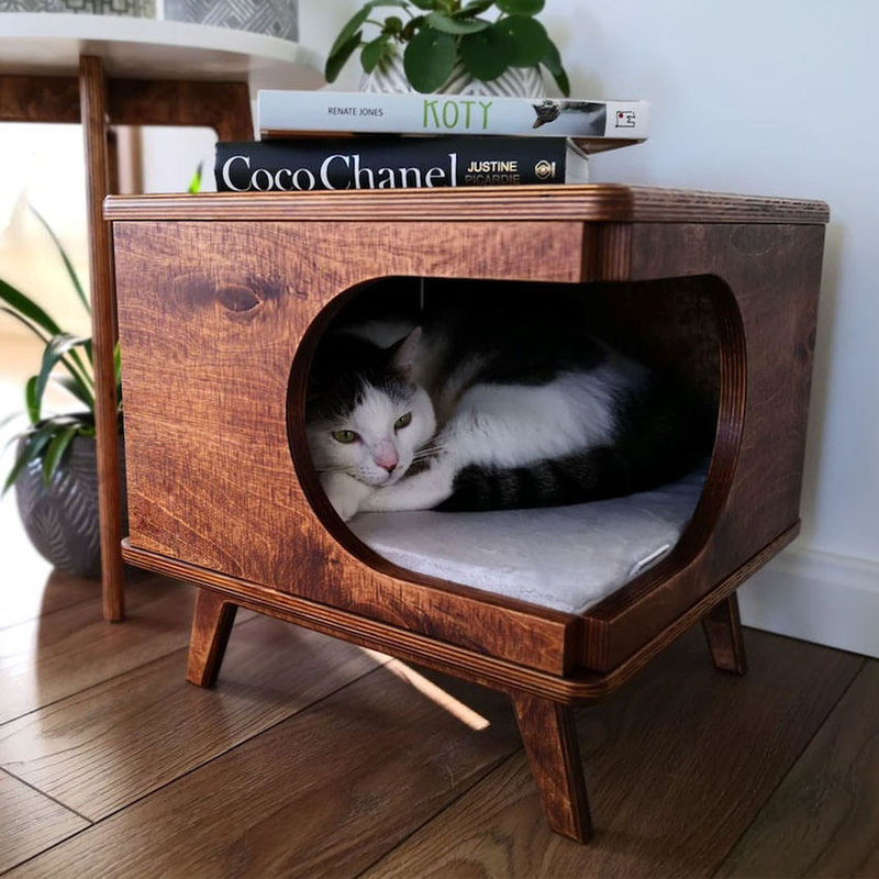 Pet 구역 : 고양이들이 집에서와 안전하게 느끼도록, 머리맡 탁자 고양이 보금자리는 고양이들에 대해 그들의 자체의 공간으로 지정하기 위해 좋아하는 지대의 일부로 사용될 수 있습니다.