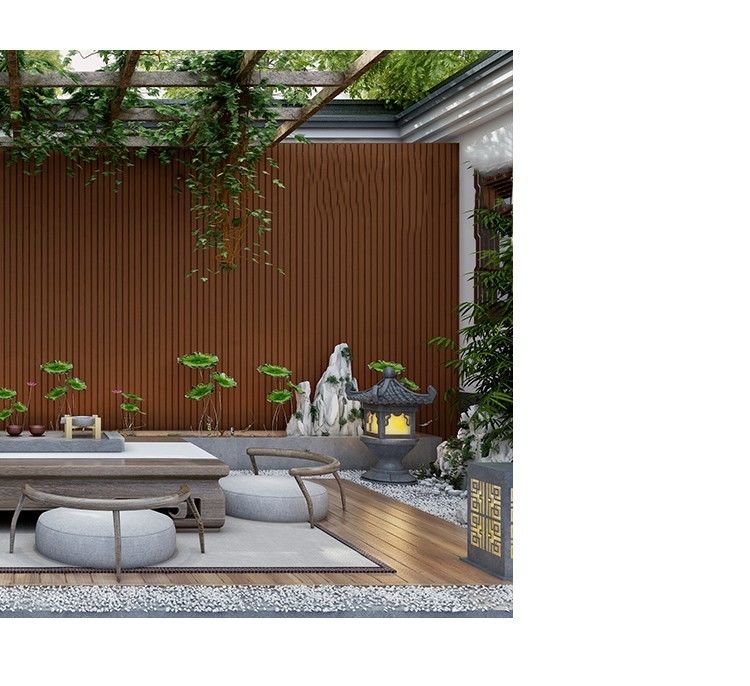 울타리와 분리 벽 : 야외 나무 피복재는 울타리의 미와 분리 벽의 사생활을 증가시키면서, 울타리와 분리 벽을 장식하는데 사용될 수 있습니다. 동시에, 그릴 설계는 또한 환기와 투광을 용이하게 합니다.