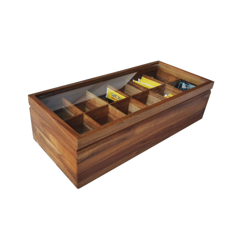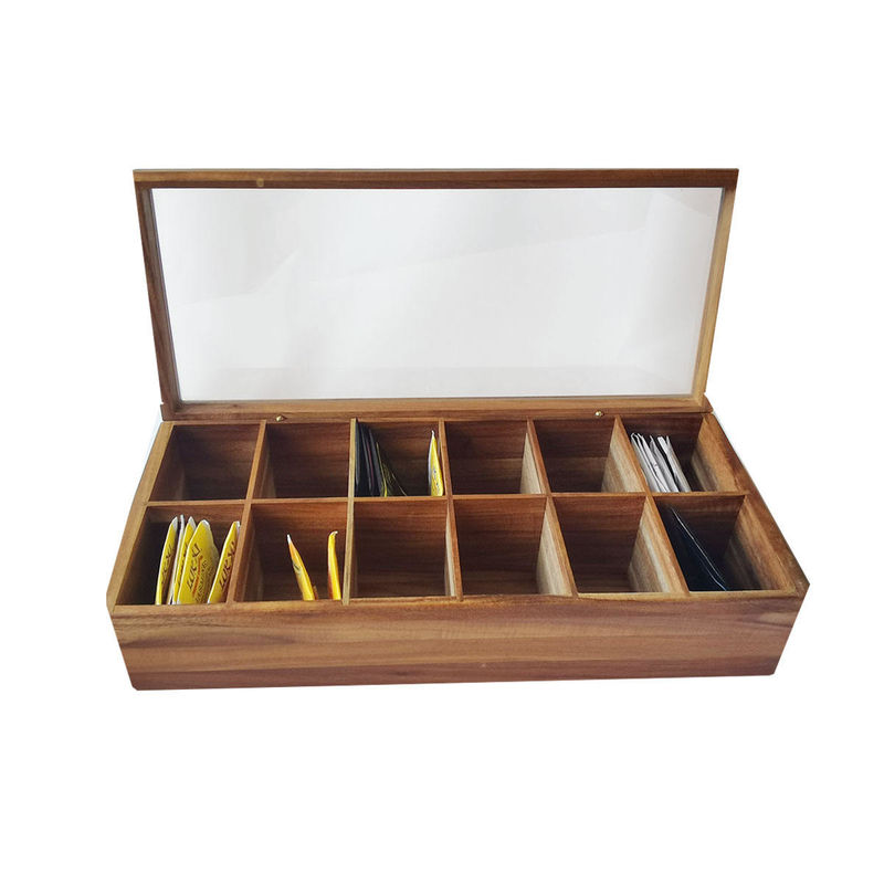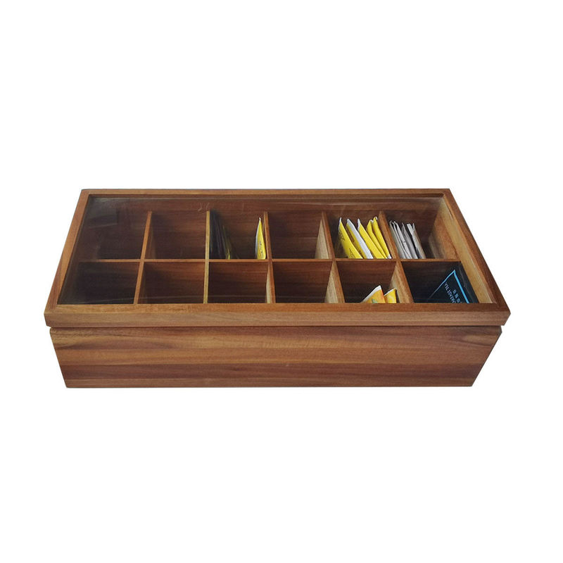 조정할 수 있는 편평 가슴 12 칸막이는 유리 덮개로 단단한 나무로 된 창시자 차봉지 상자 저장함을 전송했습니다